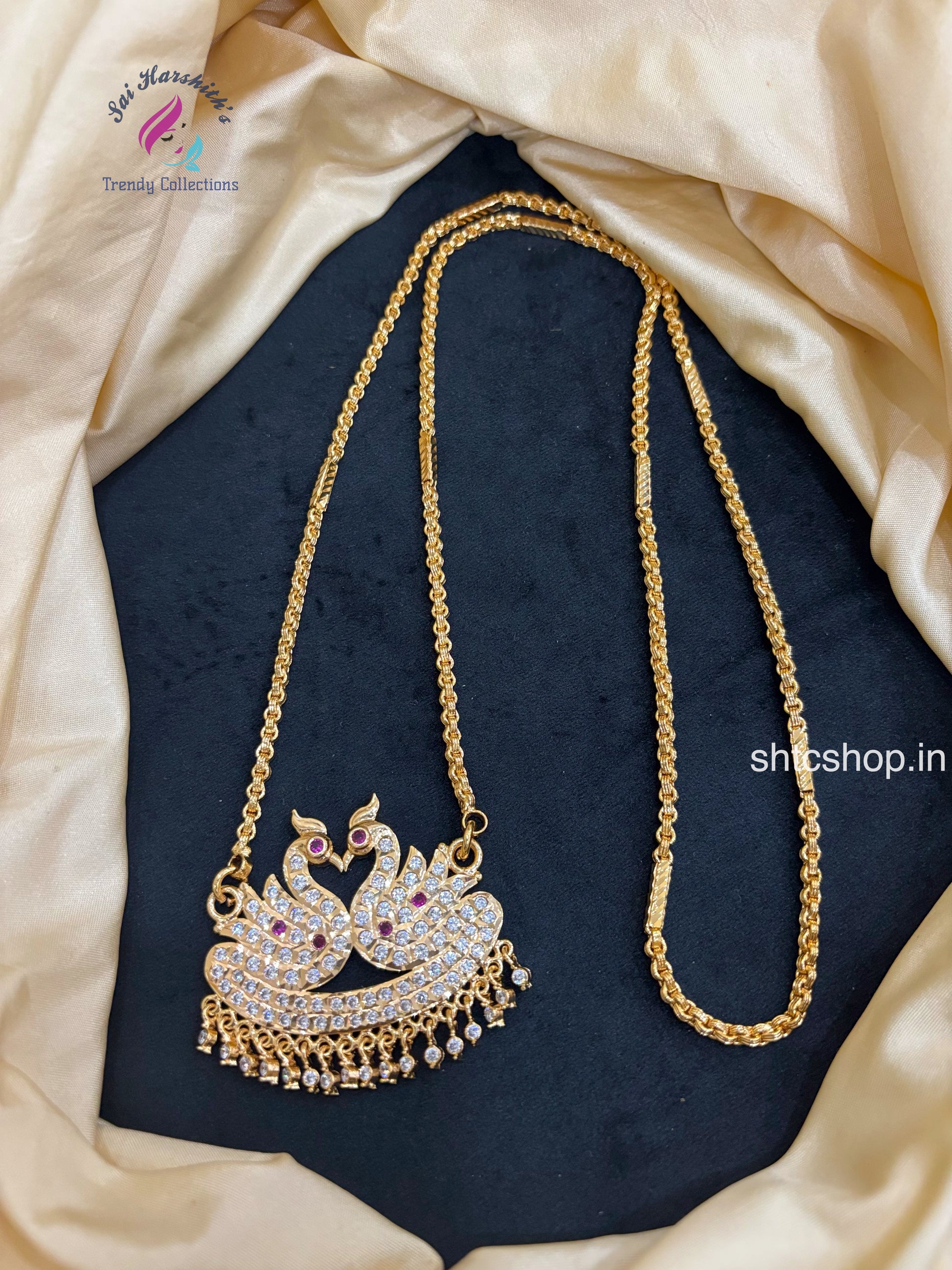 30 Inches Impon Dollar / Pendant Chain with AD Stones (Annam / Swan Design- Pink & White) - SHTC1650
