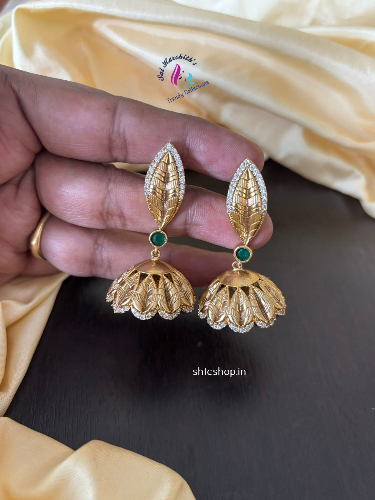 These Cute Matte Finish Jumkas feature a sophisticated blend of Kempu and AD stones, offering a refined yet traditional look. The matte finish adds subtle elegance, making them perfect for both festive occasions and everyday wear. Expertly crafted, these earrings balance vibrant color with understated charm, enhancing any outfit with a touch of classic Indian artistry.