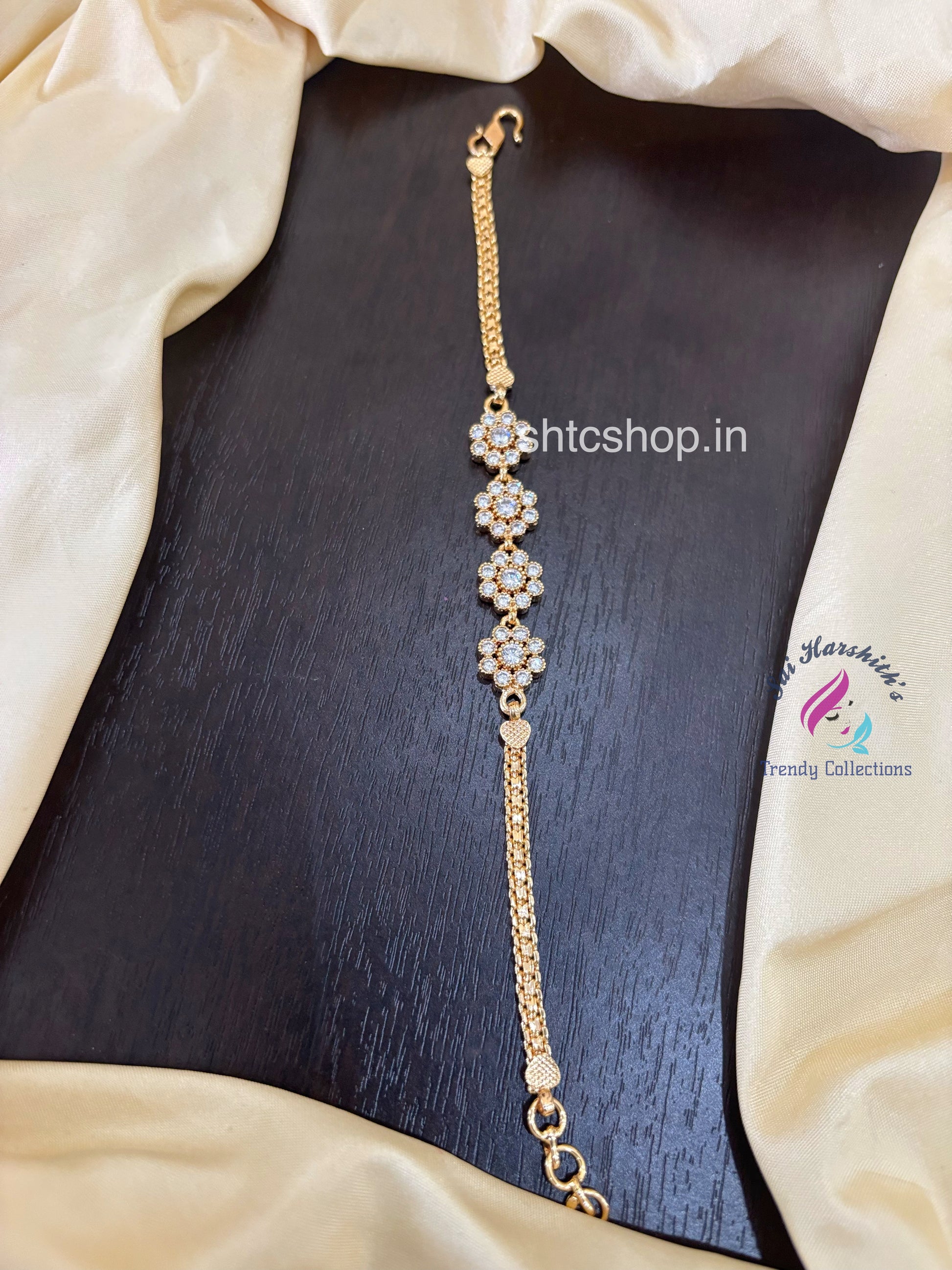 Impon / five Metal Bracelets with AD Stones (White)- SHTC1579