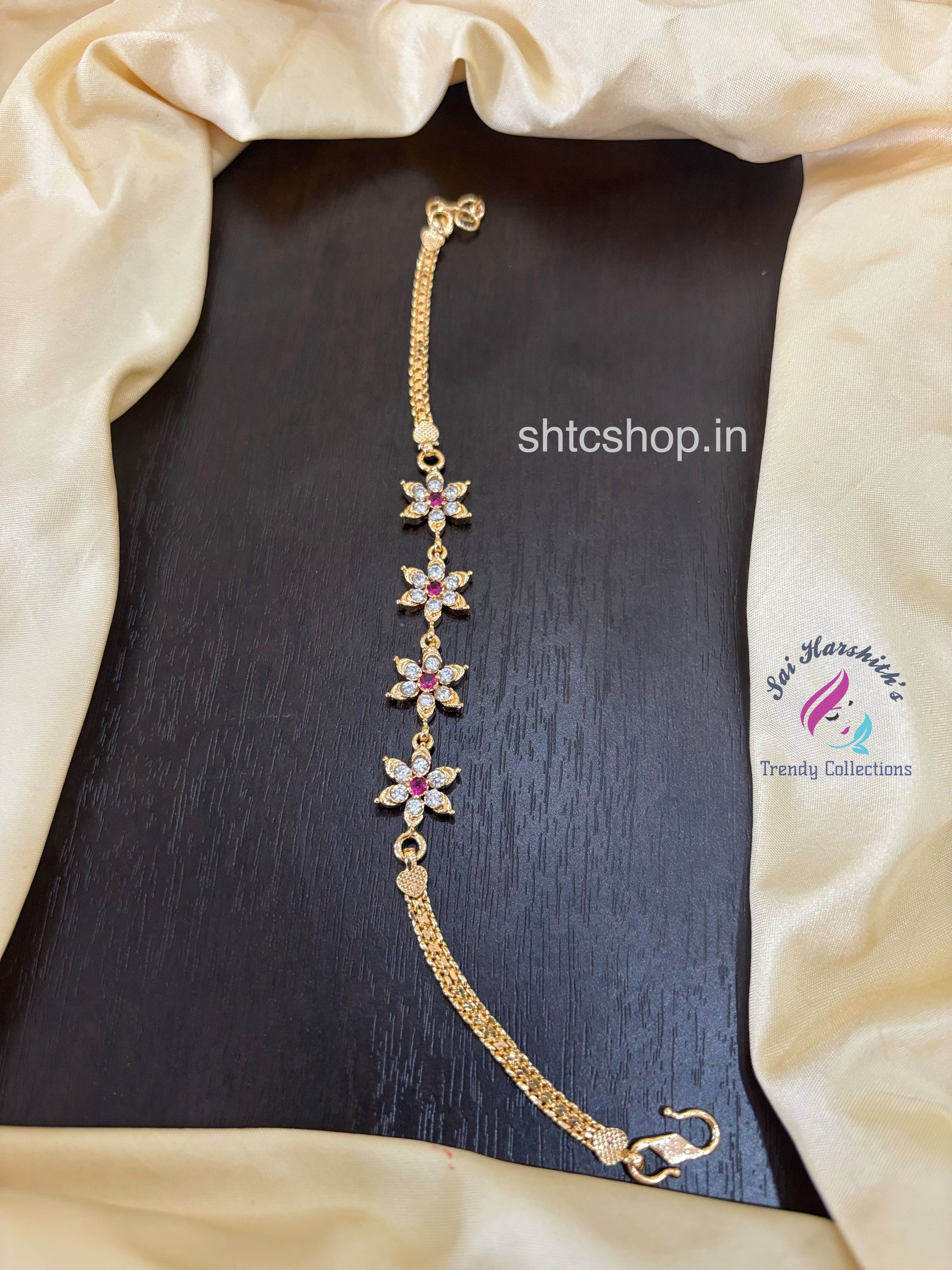 Impon / five Metal Bracelets with AD Stones (White & Pink)- SHTC1581