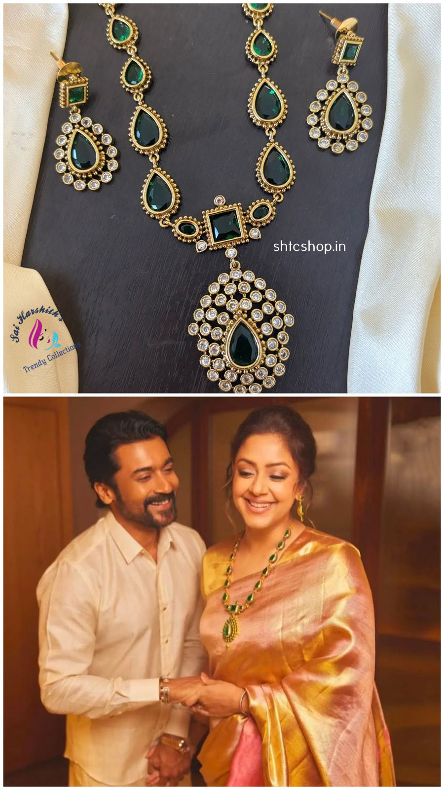 Jyothika Inspired Short emerald Statement Necklace - SHTC1234