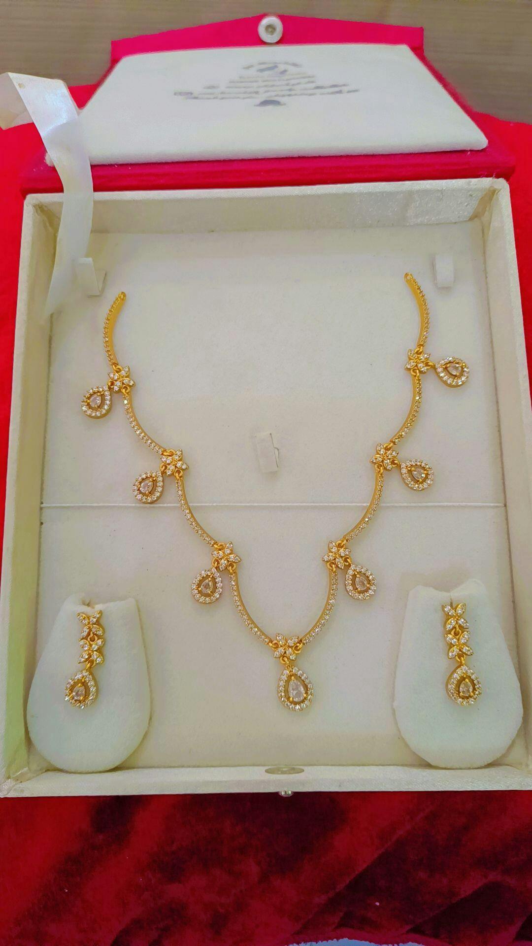 This elegant matte finish necklace showcases sparkling AD stones in a sophisticated design. With its unique finish and intricate detailing, it adds a touch of glamour to any outfit. Made with high-quality materials, it is a luxurious accessory that exudes style and sophistication. Elevate your look with this stunning necklace.