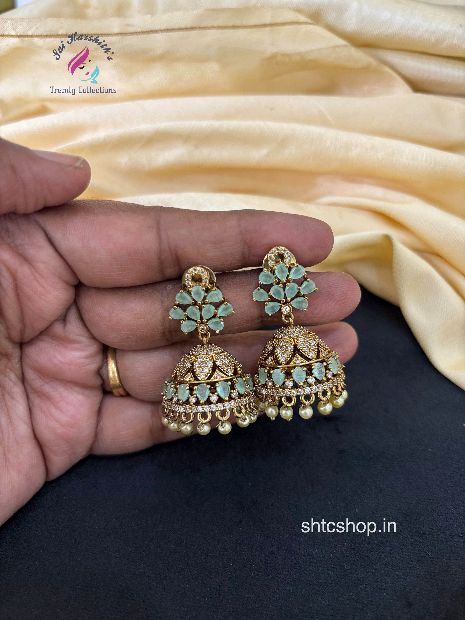 Victorian-inspired jumkas that capture the elegance of diamond jewelry without the premium price tag. This collection features five stunning vibrant colours, each finished with intricate Victorian detailing that adds sophistication and depth. The diamond look-alike stones catch light beautifully, creating a luxurious appearance perfect for festive occasions, weddings, or everyday glamour. Lightweight and comfortable for extended wear, these jumkas blend traditional craftsmanship with contemporary style. Ideal for those seeking statement earrings that deliver high-impact elegance across multiple colour options.
